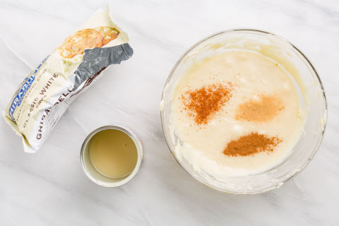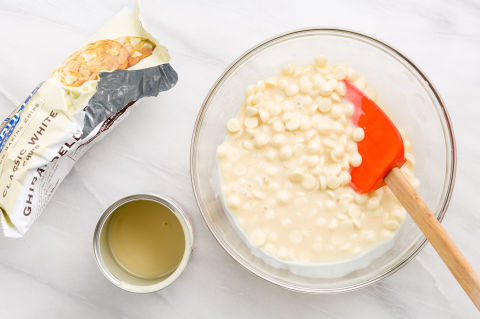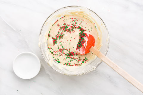 - In a large bowl, mix together melted white chocolate and sweetened condensed milk. Add nutmeg, cinnamon, and ginger and stir until combined. Stir in almost all nonpareils (leave some to sprinkle on top) until combined.