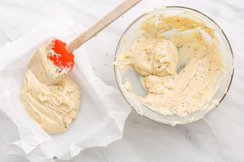 - Using a spatula, transfer fudge into a parchment-lined glass baking dish and smooth over top. Sprinkle with remaining nonpareils and let sit until firm. (Transfer to the fridge to speed up the process.) Cut into squares and enjoy.